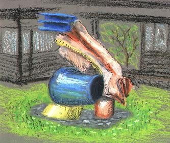 Auf dem Skulpturenweg vor der Rektoren-Baracke.