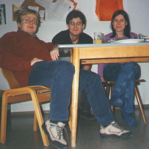 Markus, Henrik (im Tiefschlaf) und Fatima (mit Grinskrampf) im Wohnheim: